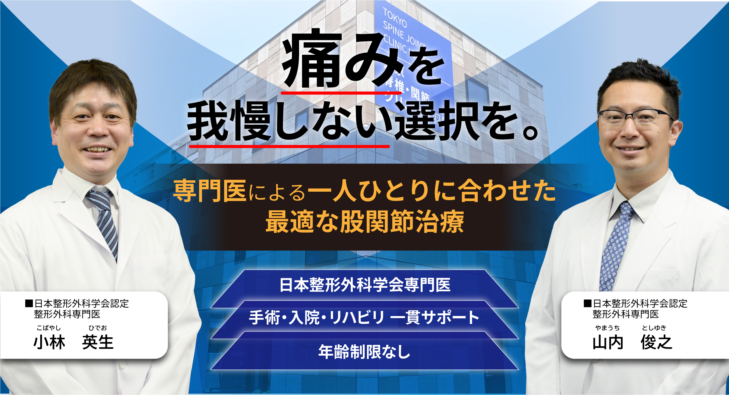 こんにちは。当院で膝・股関節疾患の診療を担当しております、小林英生と申します。