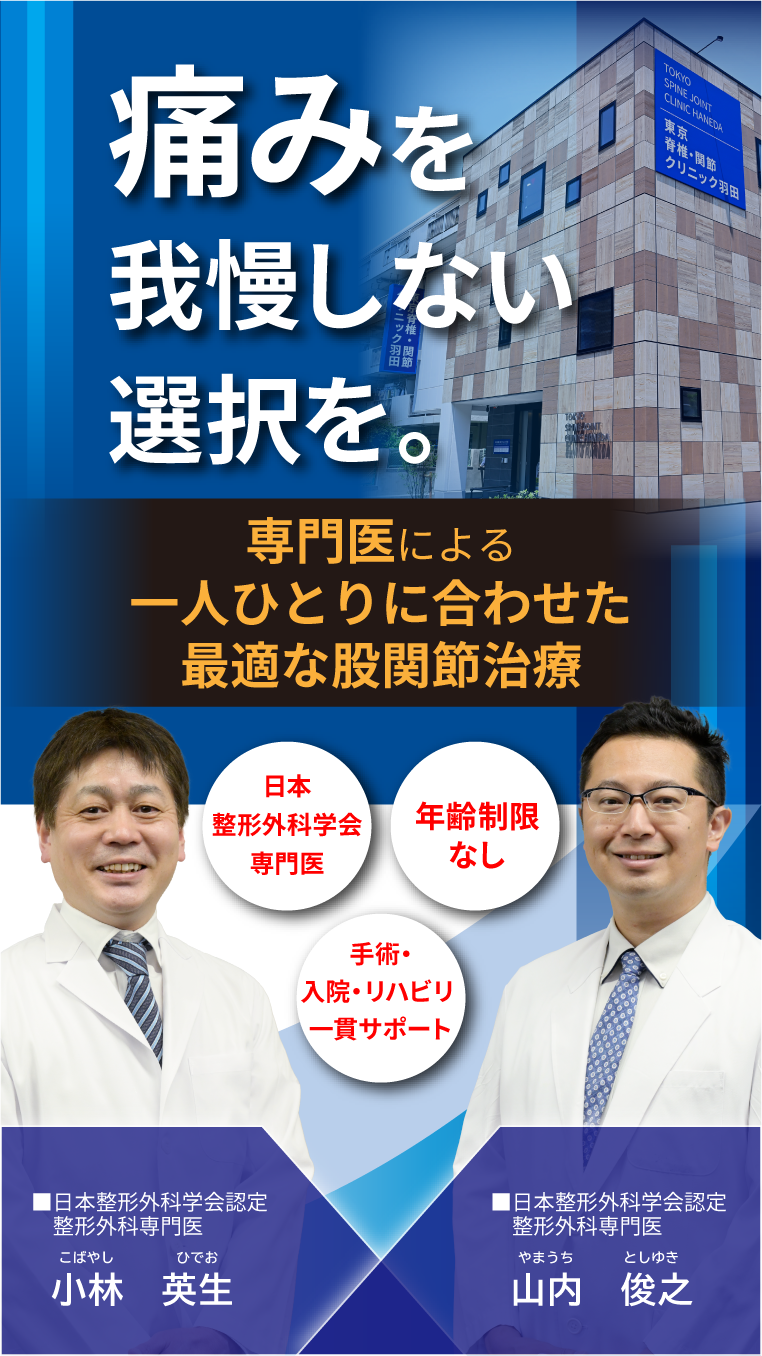 股関節疾患の治療法には、大きく分けて「保存療法」と「手術療法」があります。症状の程度や日常生活への影響に応じて、最適な治療法を選ぶことが大切です。